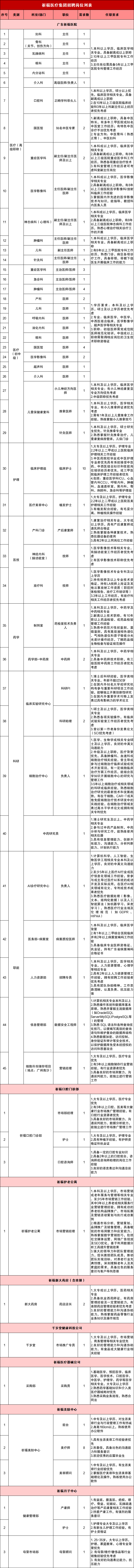 为推动医院业务发展,现广东祈福医院及医疗板块其他公司面向社会进行公开招聘: