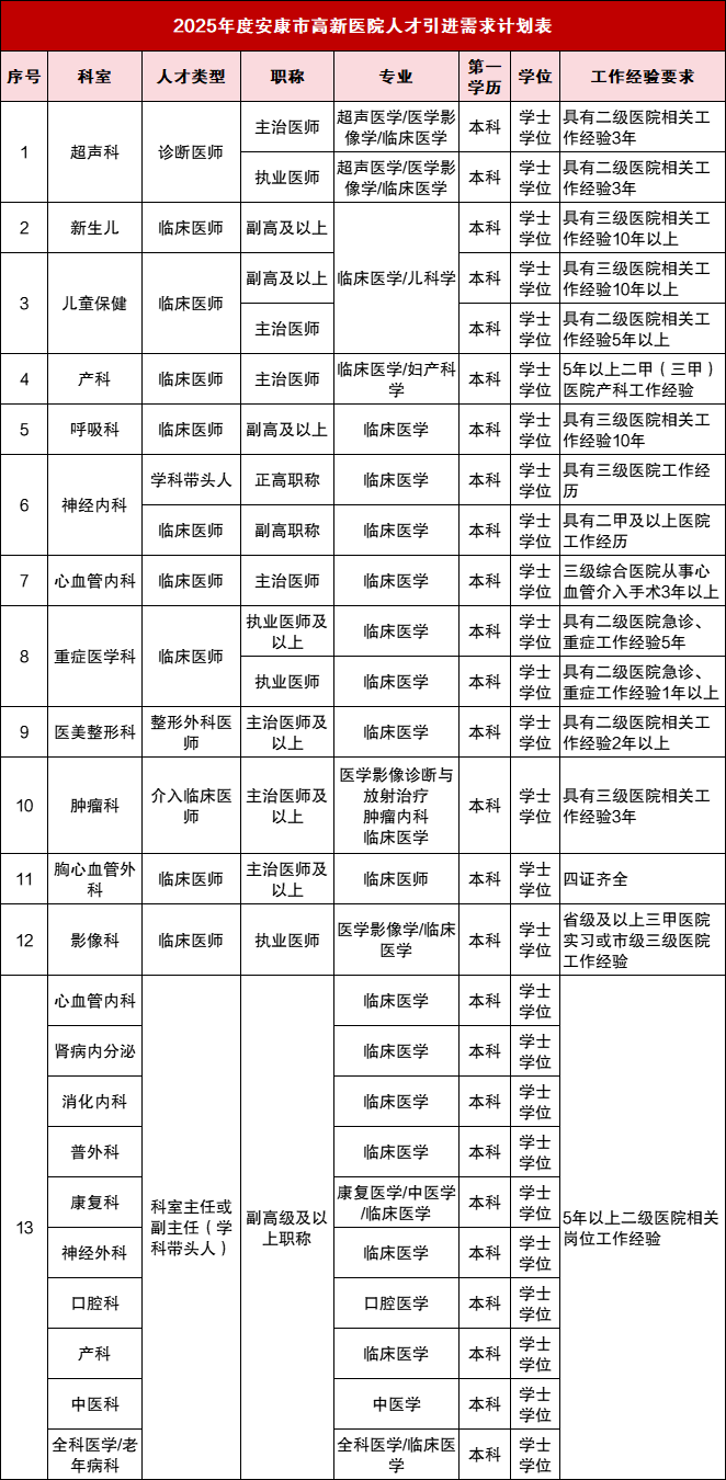 安康市高新医院 2025 年招聘来袭