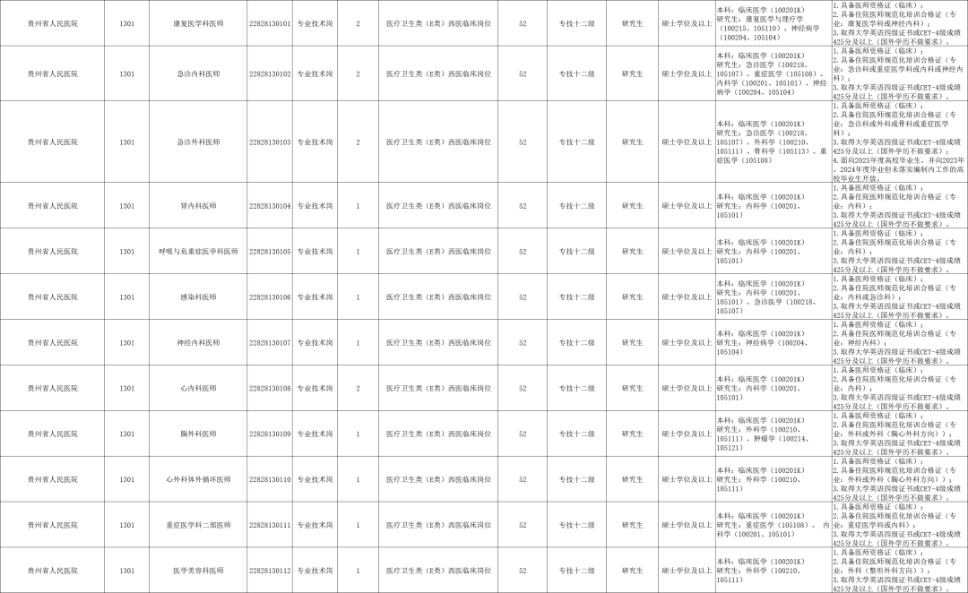 贵州省卫生健康委员会 18 家直属事业单位本次计划招聘工作人员 144 名,包括医师、技师、药师、护理人员、行政管理人员等岗位,详见下方链接。 点击查看完整招聘岗位