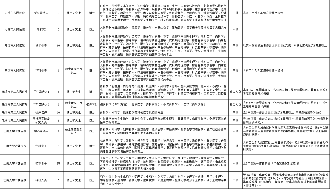 要求博士学位的岗位,应聘人员年龄 40 周岁及以下;要求具有高级专业技术资格的岗位,应聘人员年龄放宽至 50 周岁。特别优秀的学科带头人年龄可再适当放宽。