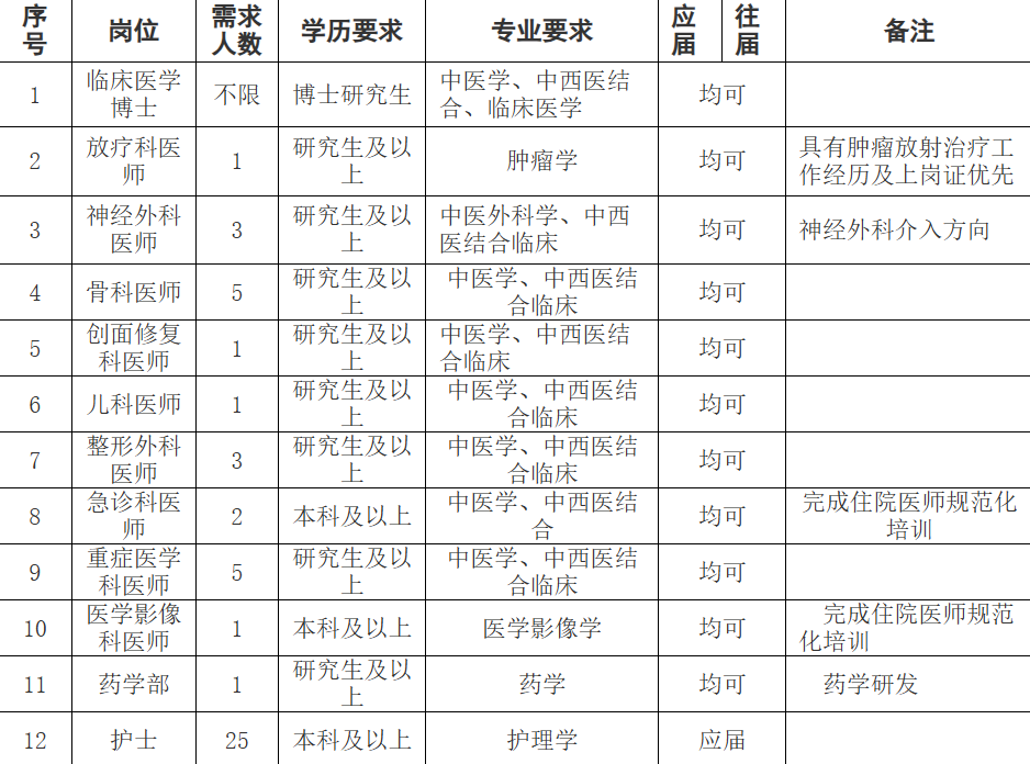 1. 计划表中所列学历均要求全日制医学院校毕业。