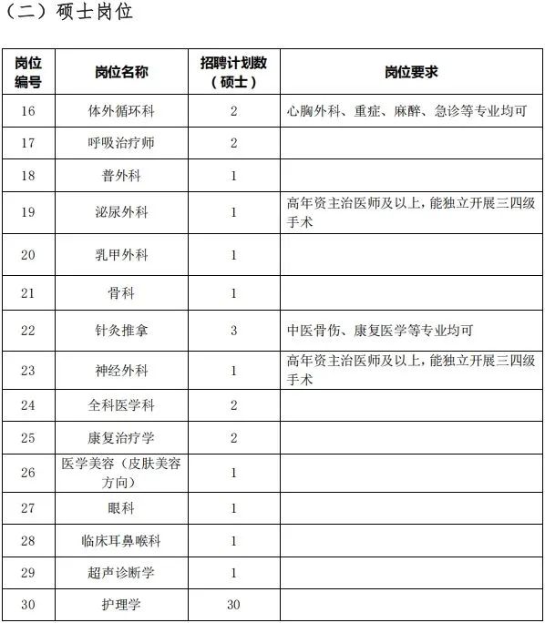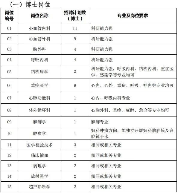 4. 特别优秀者及紧缺专业,条件可适当放宽,其他需符合科室岗位要求,具体要求详见招聘岗位要求。