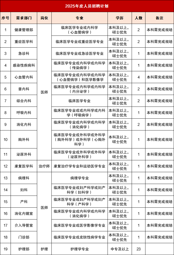 2、具有执业医师资格证,具备对应招聘岗位的需求职称