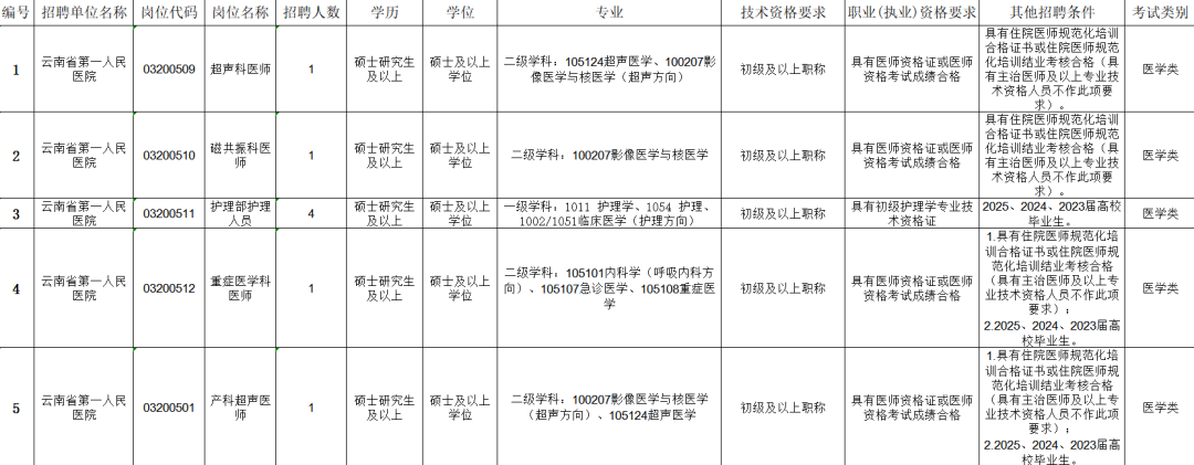 招聘医务人员 184 人!云南省卫生健康委所属事业单位 2025 工作人员招聘