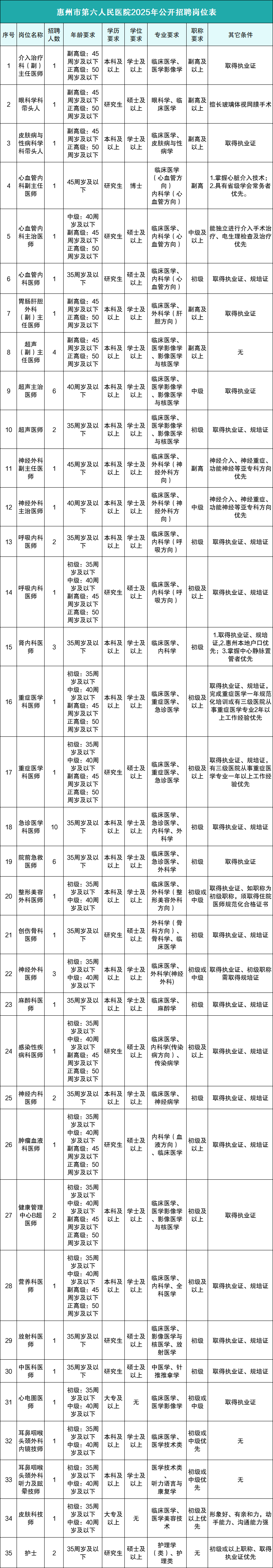 惠州市第六人民医院 2025 年公开招聘WELCOME TO JOIN US诚聘医疗人才 共筑健康惠州