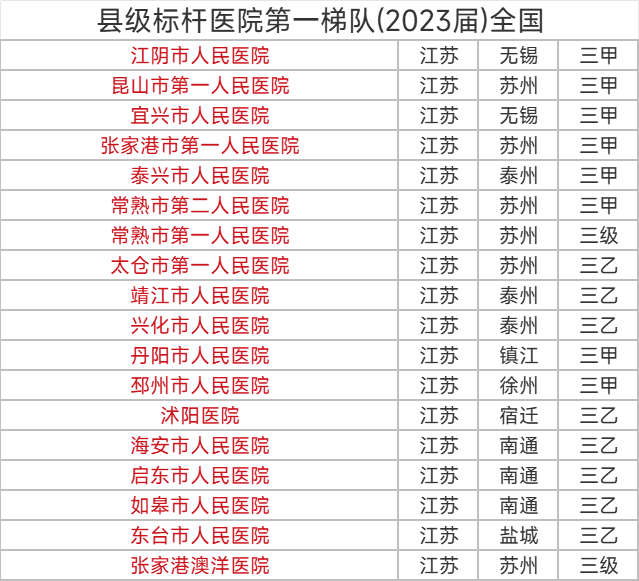 江苏地区入围县域百强的医院,数量比浙江地区更多!