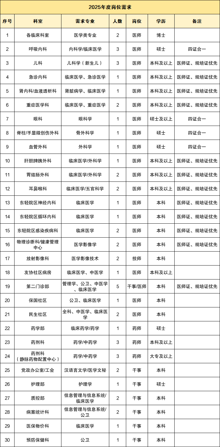 本硕博人才均招 提供食宿 | 公立三级医院发布 2025 年度岗位需求
