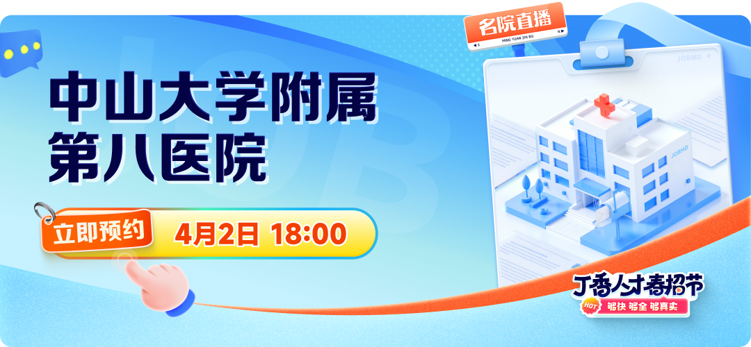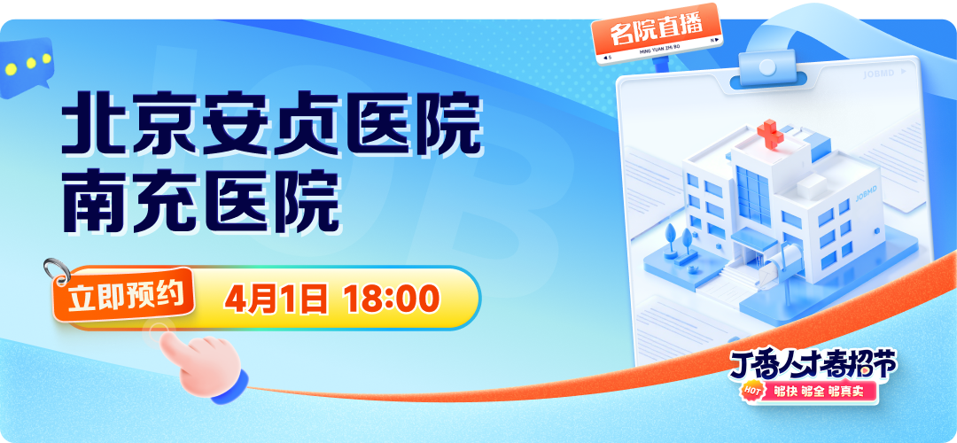 丁香人才名院直播: 与千万医护同行实时找工作、聊薪资,一起打破地区、院间信息差,助力 258 万医护求职!点击下方卡片立即查看更多预告和直播回放