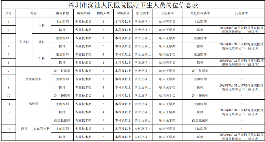 招聘医务人员 336 人!深圳市深汕人民医院 2025 年工作人员招聘
