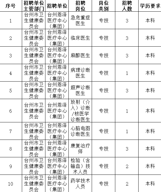 为进一步满足卫生健康事业发展需要,台州市级医疗卫生单位现面向社会公开招聘工作人员。