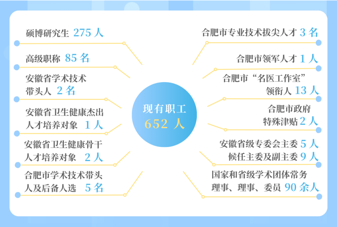 合肥市口腔医院创建于 1956 年,前身为安徽省牙病防治所,1982 年更名为合肥市口腔医院,2008 年成为安徽医科大学合肥口腔临床学院,2014 年晋升为省内首家三级口腔专科医院。医院按照「广辐射、多布点,努力打造 20 分钟就诊圈」的发展战略,形成了「1+4+N」的格局,即滨湖院区、长江路院区、西区和东区以及四个门诊部,总建筑面积 6 万平方米,门、急诊量 70 万人次,年手术量超 18 万台次,牙椅 550 张,床位 200 床,在规模和体量上位居国内口腔专科医院前列。