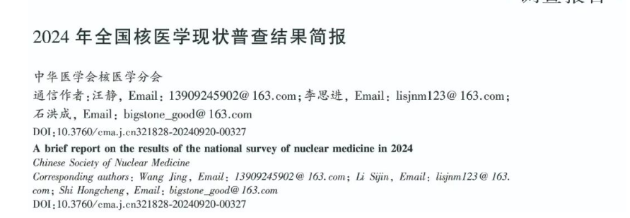图源:中华核医学与分子影像杂志 但是,根据中华医学会核医学分会统计的《 2024 年全国核医学现状普查结果简 报》:全国共有 15677 人从事核医学相关工作,较 2019 年(12578人)增加了24.6%(3099人),其中医师 6748 人 (占 43.0%)、技师4461人 (占 28.5%)、护士 3548 人 (占22.6%)、其他 920人(占5.9%)。 从事核医学工作者中:高级职称占 23.0%、中级职称占 40.1%、初级职称占 35.0%、其他占 1.9%;具有研究生学历占 31.9%、本科学历占 57.6% 、专科学历占10.5%。这无疑是很大的人才缺口。