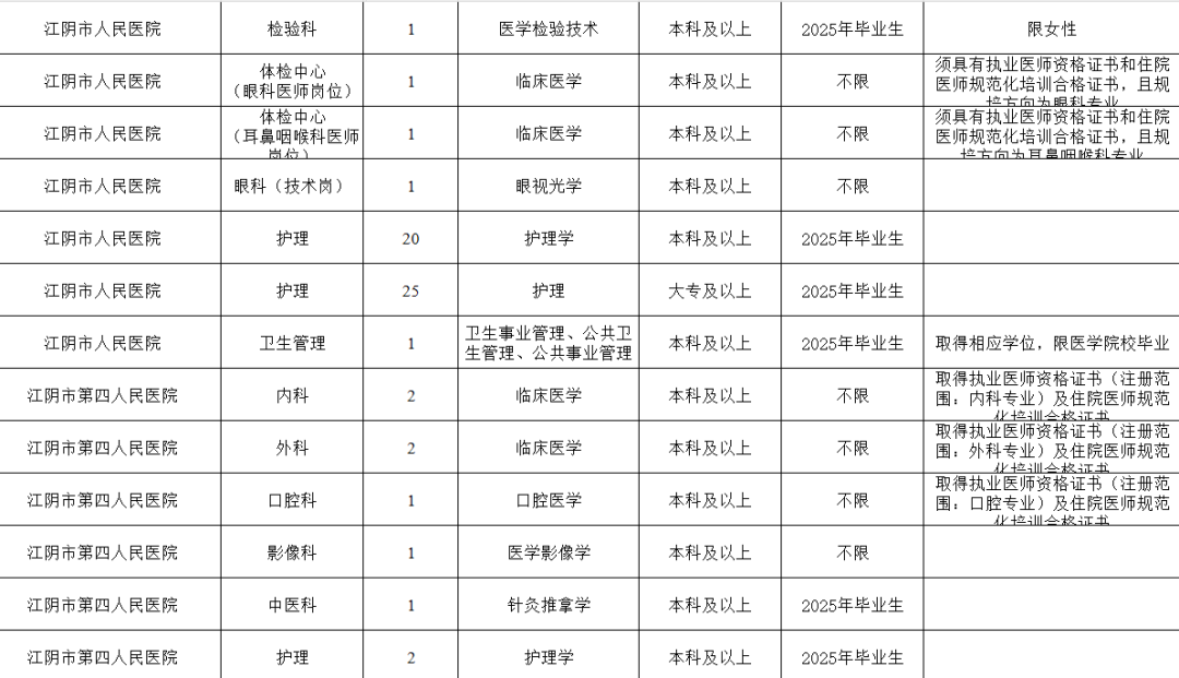 招 173 人!江阴市医疗卫生单位 2025 公开招聘
