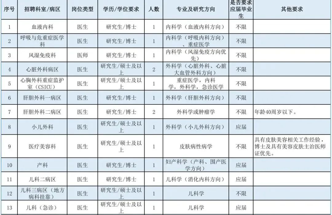 报名时间: 博士岗位全年长期招聘 (医院将根据报名情况分批次安排面试,具体以医院通知为准) ,岗位招满即关闭报名通道。