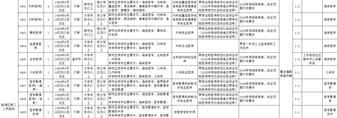 因工作需要,温州市瓯海区卫生健康局下属事业单位统一公开招聘 37 名事业编制(含事业编制报备员额)工作人员。