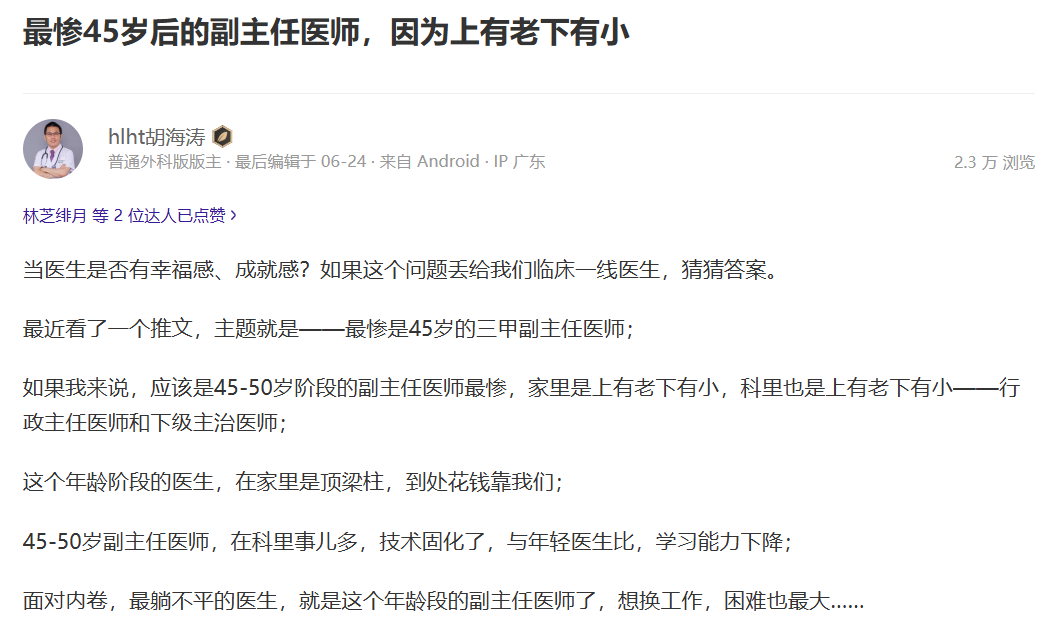 什么? 45 岁后的副主任医师为啥最惨?对方给出的解释是:因为 2 个 「上有老下有小」 :