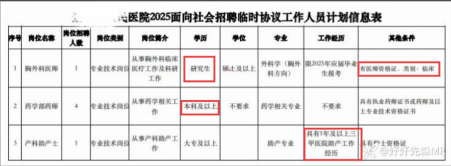 近日,丁香园社区  @好好先森MR  发帖称:连合同制都不如的 临时协议 招聘,招的还是研究生和本科生,就已经这么卷了吗?一年协议,不合格直接不聘用,合格再签合同,这是缺人,招人干活吧?有点离谱!