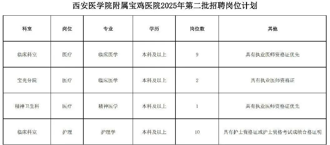 本科可投!西安医学院附属宝鸡医院 2025 年第二批招聘公告