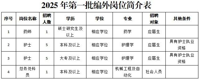 招聘安排 报名时间: 招聘公告发布日起至 2025 年 8 月 1 日,报名时间为工作日上午 8:00-11:20,下午 13:30-16:00 报名方式: 现场 报名。