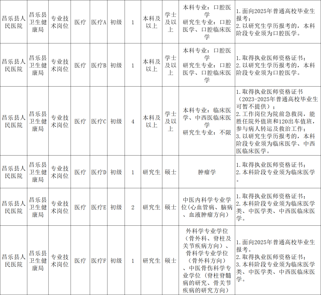 根据《事业单位人事管理条例》(国务院令第 652 号)、《事业单位公开招聘人员暂行规定》(人事部令第 6 号)、《山东省事业单位公开招聘人员实施办法》(鲁人社规〔2022〕2 号)等关规定,经研究决定,2025 年昌乐县卫健系统所属事业单位面向社会公开招聘 22 名工作人员(控制总量人员),具体事项公告如下: