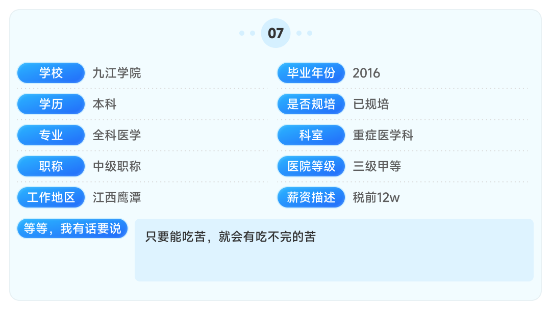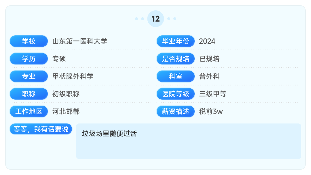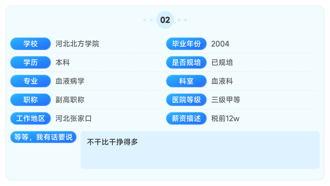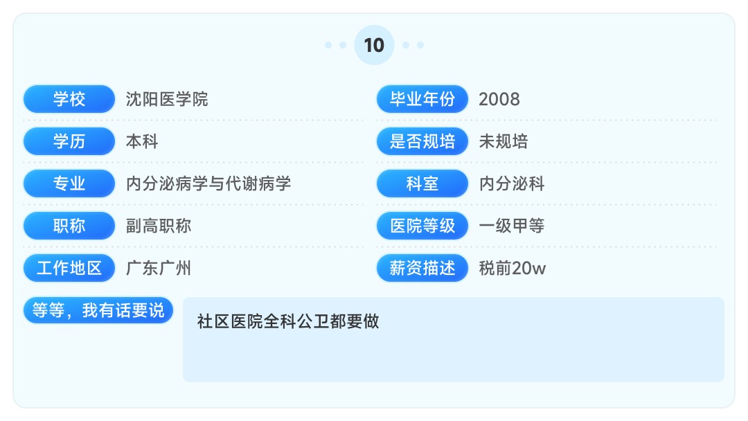 注:本问卷回收的「客观信息」一经选中,均会直观展示且优先保护隐私, 部分信息准确性受填写人主观意图或阅读理解方式干扰,仅供参考! 若发现您填写的信息有误,可后台联系丁香人才勘误或评论区直接勘误。
