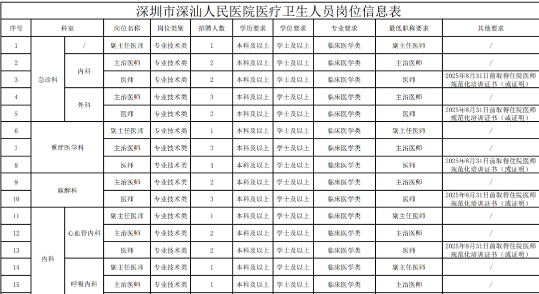 (多岗本科可投)117 名医务人员!深圳市深汕人民医院医疗卫生人员 2025 年第二批招聘公告