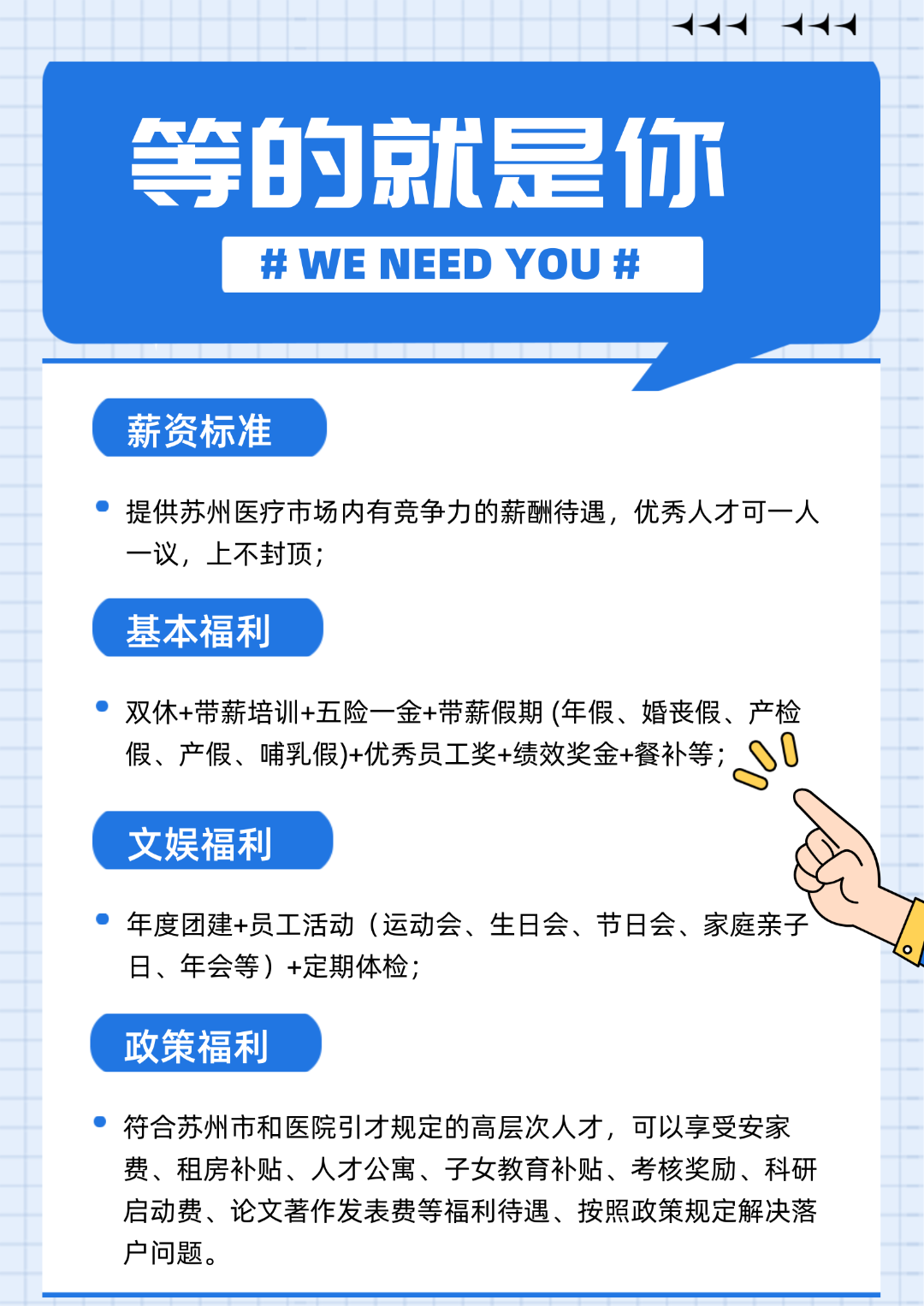 • 医院秉承「人才第一,以奋斗者为本!」人才理念
