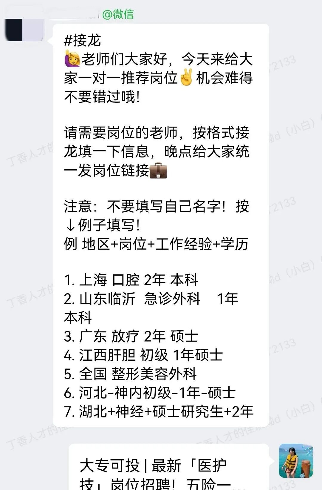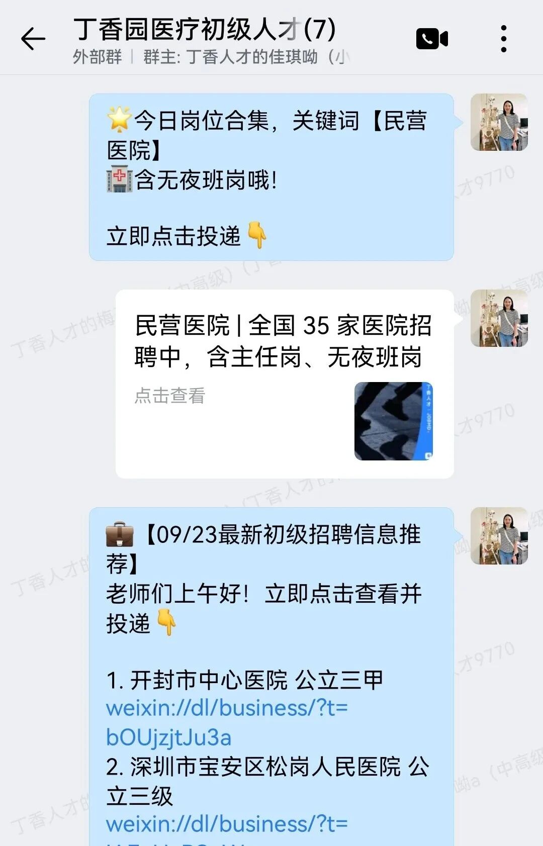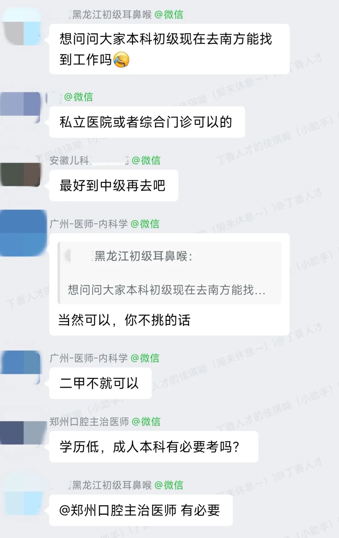 如果,这位口腔科的同仁当时能有一两个初级同行交流群 点此加入丁香人才求职交流群, 问一问群里全国各地医疗专业的同辈们……不管是刚刚考取执业医、入职避雷求经验,还是面临着新手医生的迷惘、职业去留的选择,都能在群里问上两句,互不相识的网友就是最能爆料的 (这是真的) 。