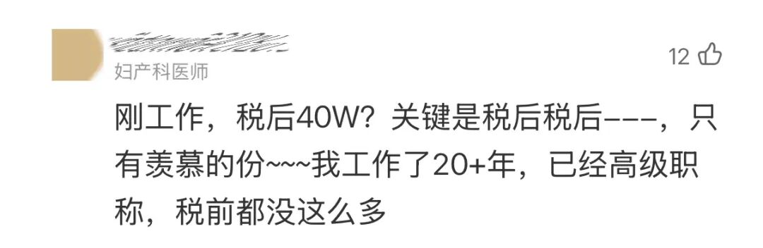 这位医生工作单位是北京的头部专科医院,硕士毕业,作为住院医师在这工作的第二年。每月到手工资 2w多,加上各项补贴、季度奖金和年终奖, 综合到手已经在税后 40w左右 。