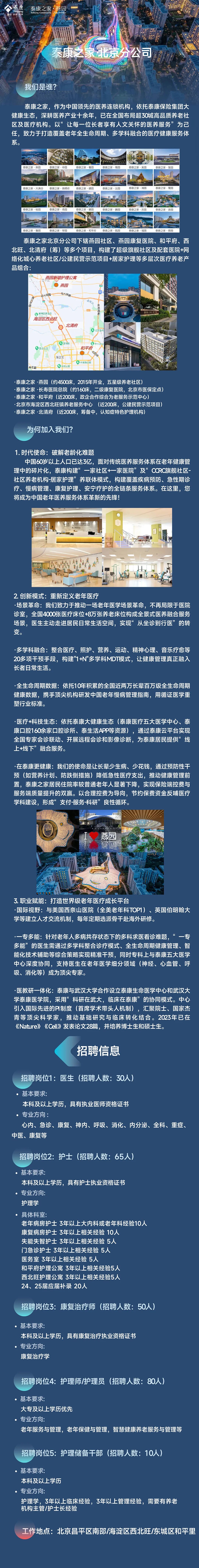 急聘 200+ 人 大专起投 提供住宿 | 医院社/校招同步招聘日期:2025-10-17 来源:丁香人才公众号 泰康之家-北京分公司 邀您加入 应聘 点击投递 图片来源:泰康之家经营管理有限公司 微信扫一扫分享资讯上一篇:129 个编制岗!呼和浩特市卫健系统所属事业单位 2026 年人才引进公告下一篇:上海市中医医院 2025-2026 新职工招聘公告