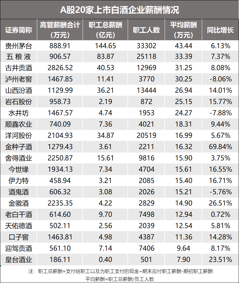 众所周知,贵州茅台、五粮液这类企业薪资待遇十分可观。2024 年白酒企业薪酬榜中可见, 职工平均薪酬达 33.39W