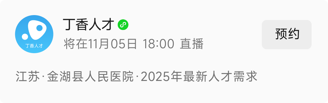 丁香人才名院直播: 与千万医护同行实时找工作、聊薪资,一起打破地区、院间信息差,助力 260 万医护求职!