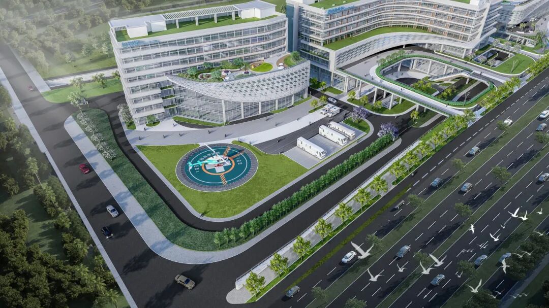 深圳市宝安区空海医院,是为满足国家发改委对前海特区的战略要求而规划的 公立三级甲等综合性医院 ,国家紧急医学救援队(广东)深圳基地,系全国首家兼具空海救援为特色的公立医院,即将璀璨启幕。医院坐落于机场南路与宝安大道的黄金交汇点东北侧,地理位置得天独厚,紧邻宝安国际机场与福永码头,经由深中通道、沿江高速及广深公路可迅速通达,有效辐射并服务于整个粤港澳大湾区。(医院总占地面积 5.0l 万㎡,建筑总面积为 20.03 万㎡)