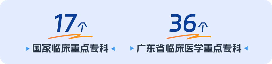 医疗服务立足华南,辐射全国,主要医疗指标居全国前列。医院现有国家临床重点专科 17 个、广东省临床医学重点专科 36 个,擅长疑难危重疾病多学科综合性诊断治疗。