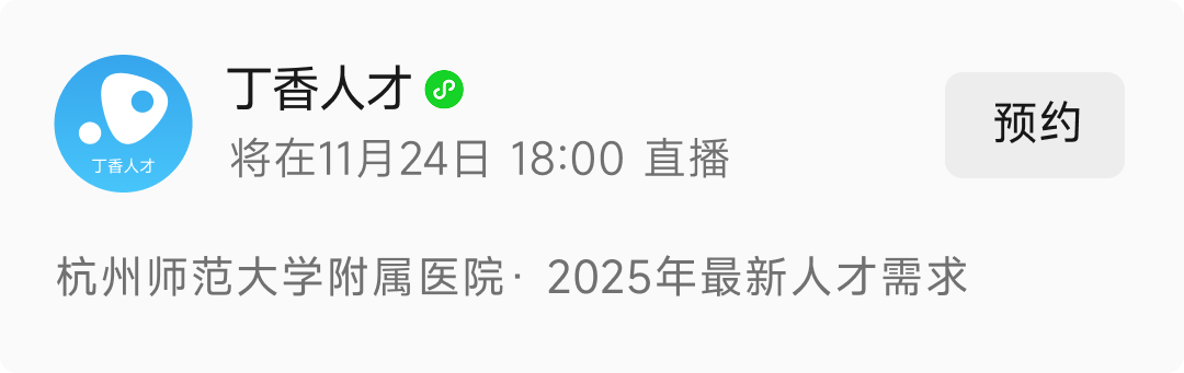 直播亮点: 公立三甲,两个院区,同时享受杭州市人才补贴和医院人才补贴,还有公积金补贴。医护药均招,最新用人需求和更多福利待遇都在直播间!立即预约观看直播 👇点击立即预约 👇