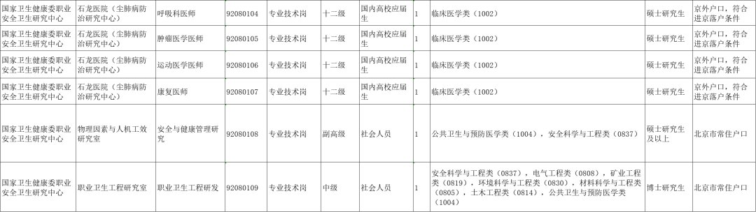 需要注意的是,部分岗位限制北京市常住户口,其余则需要符合进京落户条件。不过 2025 年落户条件较前放宽,有兴趣的可以进一步了解一下哈~ 点击投递 国家卫健委直属和联系单位