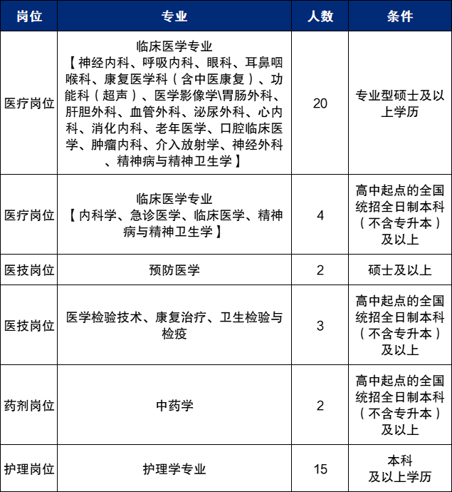 4.应聘人员须取得毕业证、学位证,医疗岗位还须取得住院医师规范化培训合格证、医师资格证、医师执业证;护理岗位还须取得护士执业证。