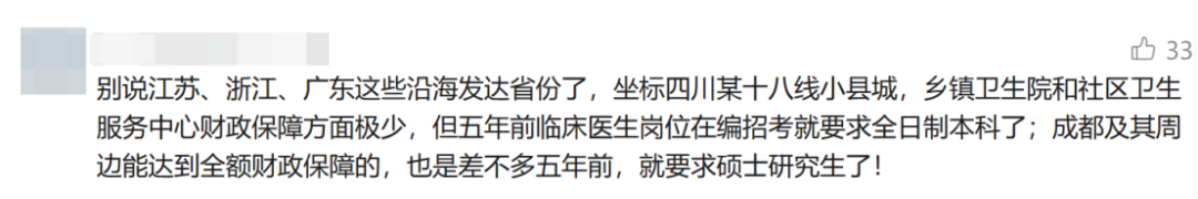 在之前关于社区医院的文章下面,也有读者评论社区医院 全额拨款的编制岗 ,五年前就已经开始招硕士了。
