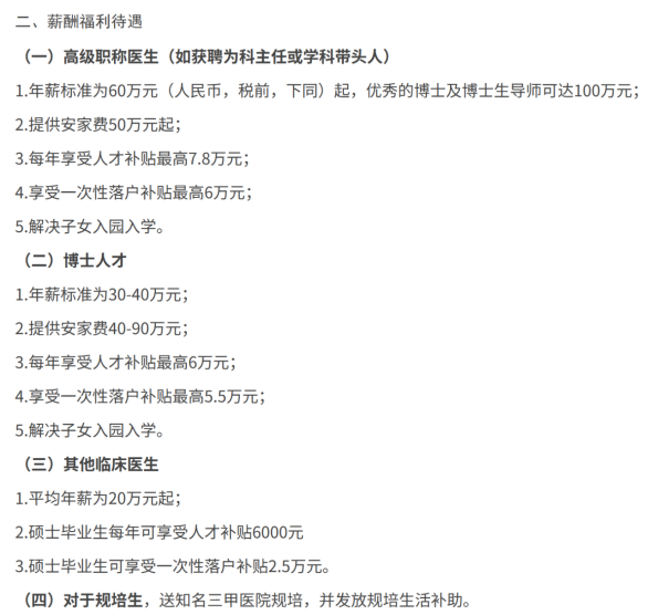 硕士年薪 20W 起,房价 1W,这样的医院你来吗?