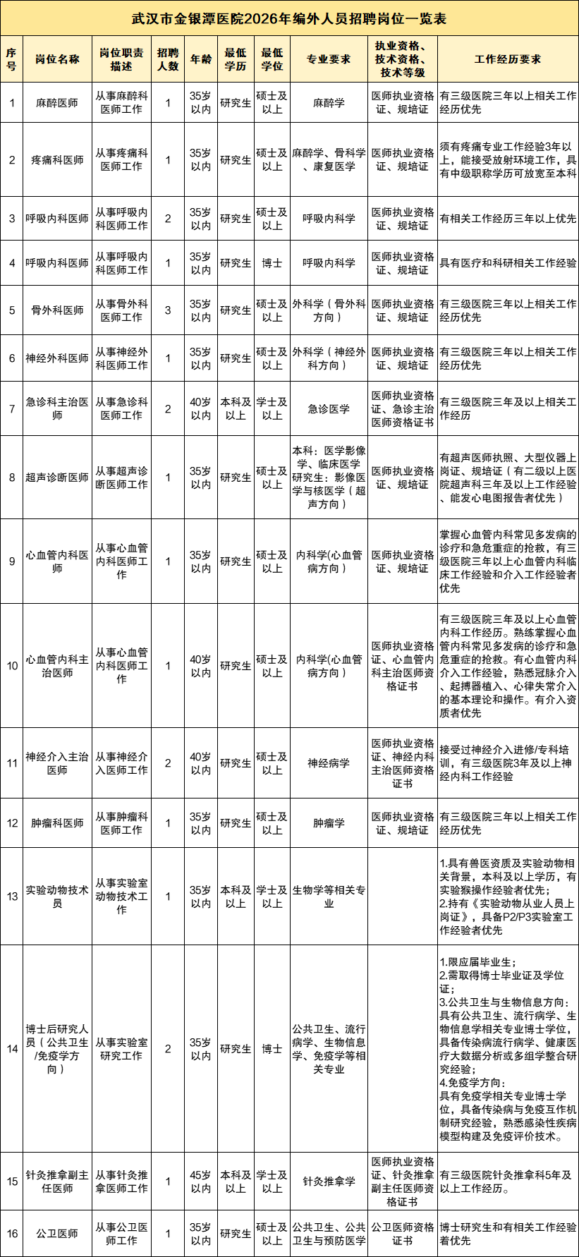 华中科技大学同济医学院附属 武汉市金银潭医院招贤