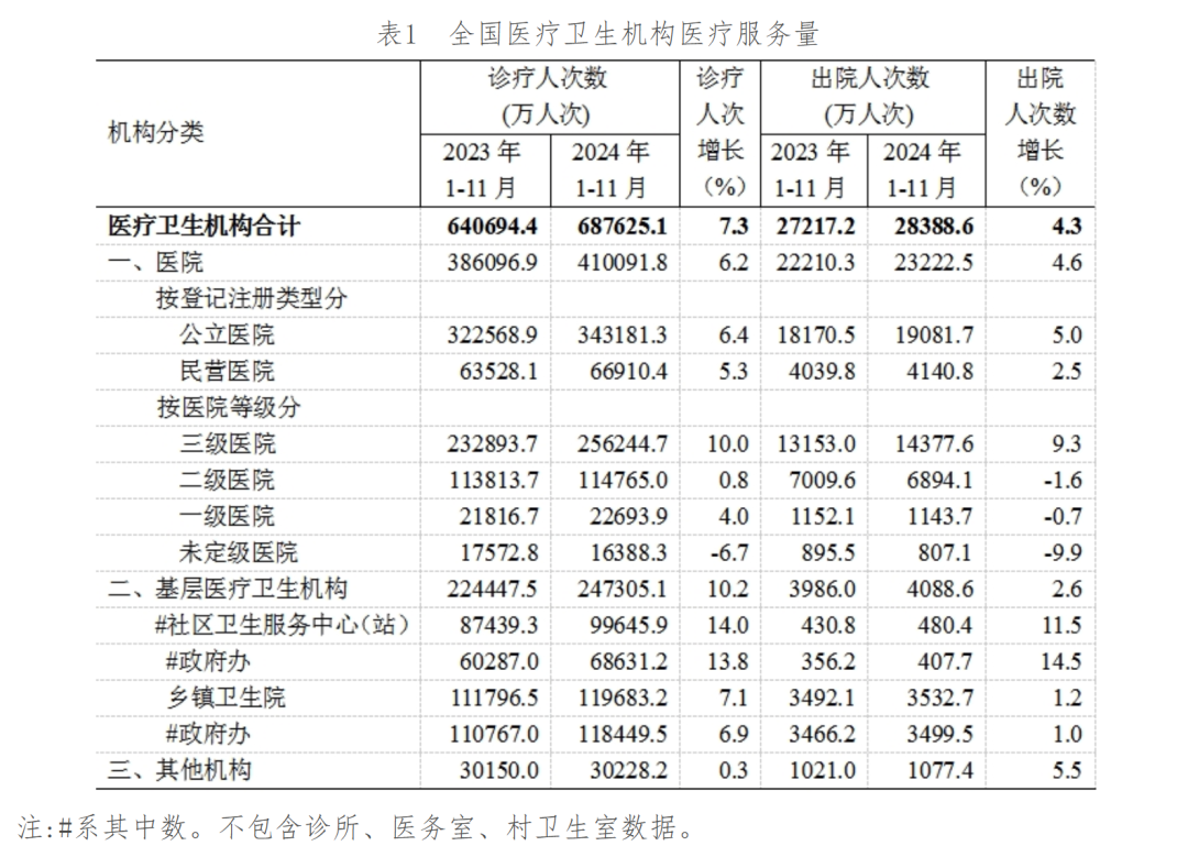 国家卫健委信息统计中心 2025 年 6 月初发布的《2024 年 1-11 月全国医疗服务情况》显示: