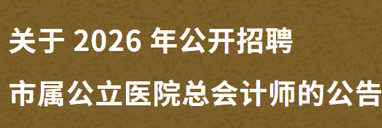 2026 年公开招聘市属公立医院总会计师公告