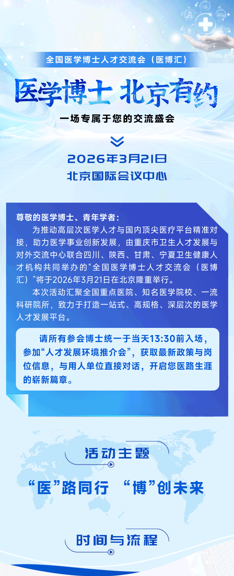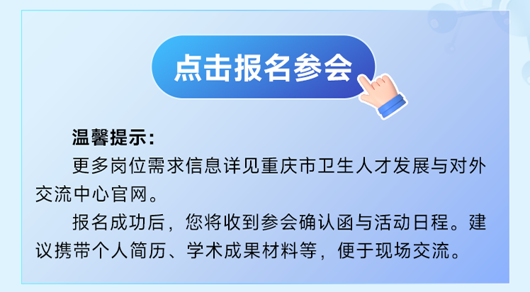 报名开启 | 全国医学博士人才交流会,期待您的到来!日期:2026-02-14 来源:丁香人才公众号 图片来源:重庆市卫生人才发展与对外交流中心 微信扫一扫分享资讯上一篇:可入编 211 大学!河南大学第一附属医院诚聘海内外优秀博士下一篇:哪些科室,过年比平时还要忙?!