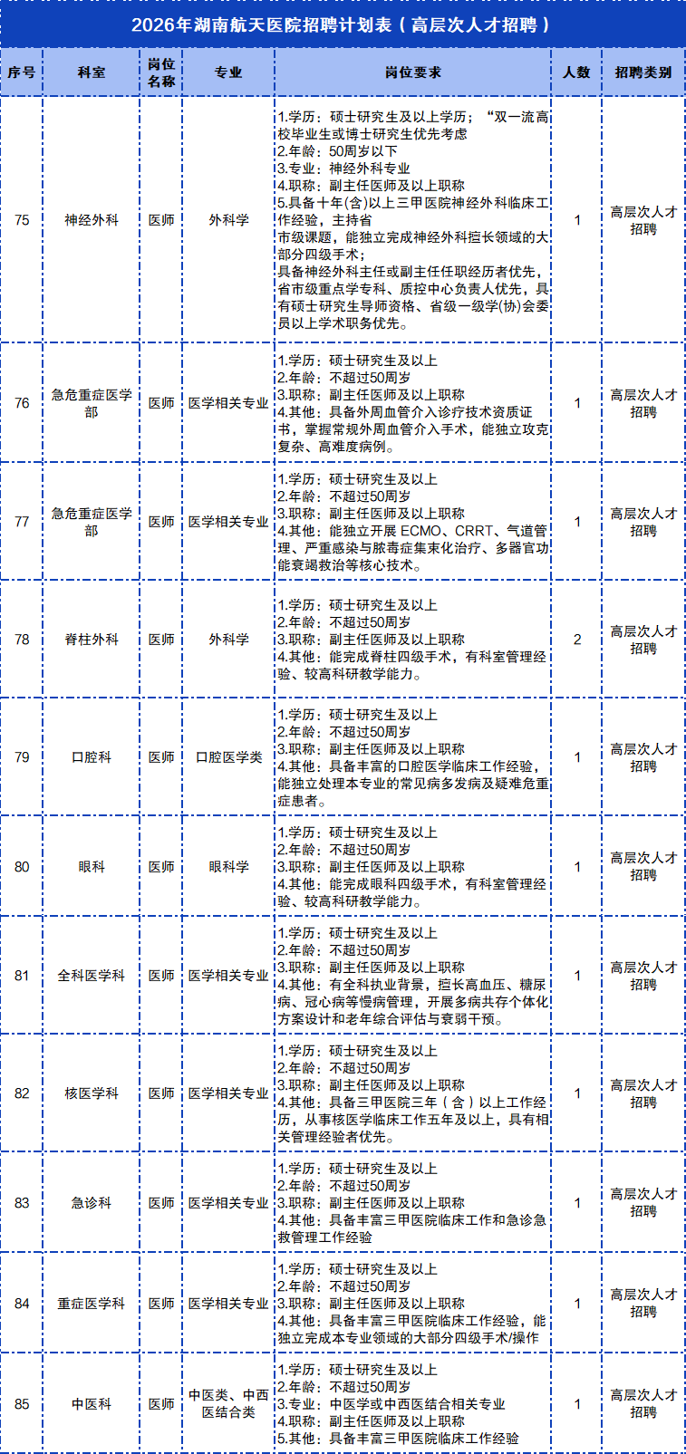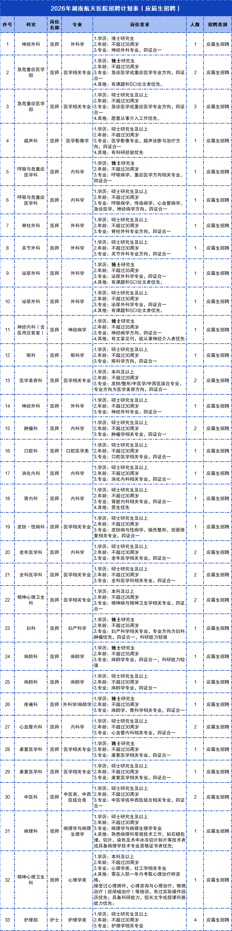 湖南航天医院 2026 招聘 公立三甲医院 名院直播这里有广阔平台,让你施展医术