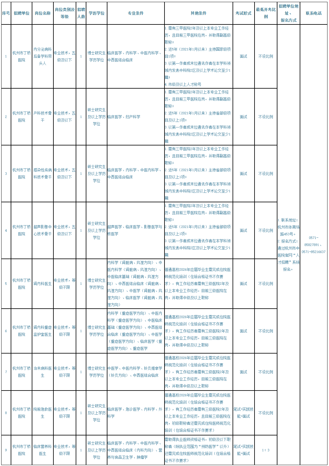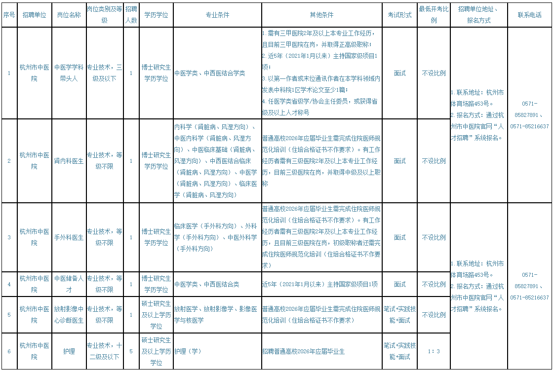 2026杭州市中医院(武林院区/丁桥医院)公开招聘高层次人才公告