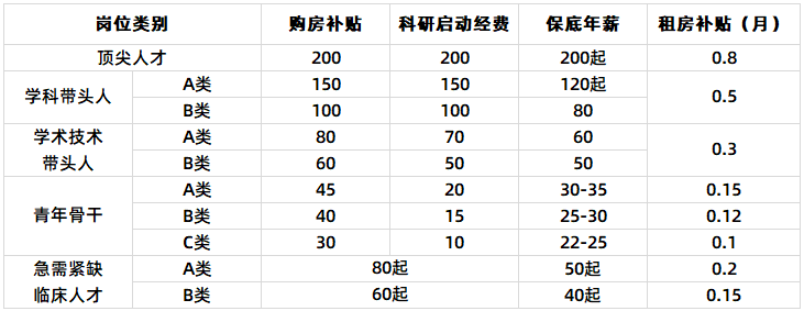 表 1 引进人才待遇一览表(单位:万元,人民币、税前金额)