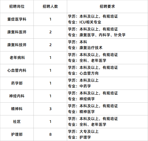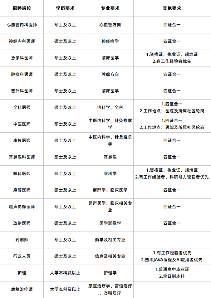 备注:医院常年招聘博士、专业骨干,薪资福利待遇从优。