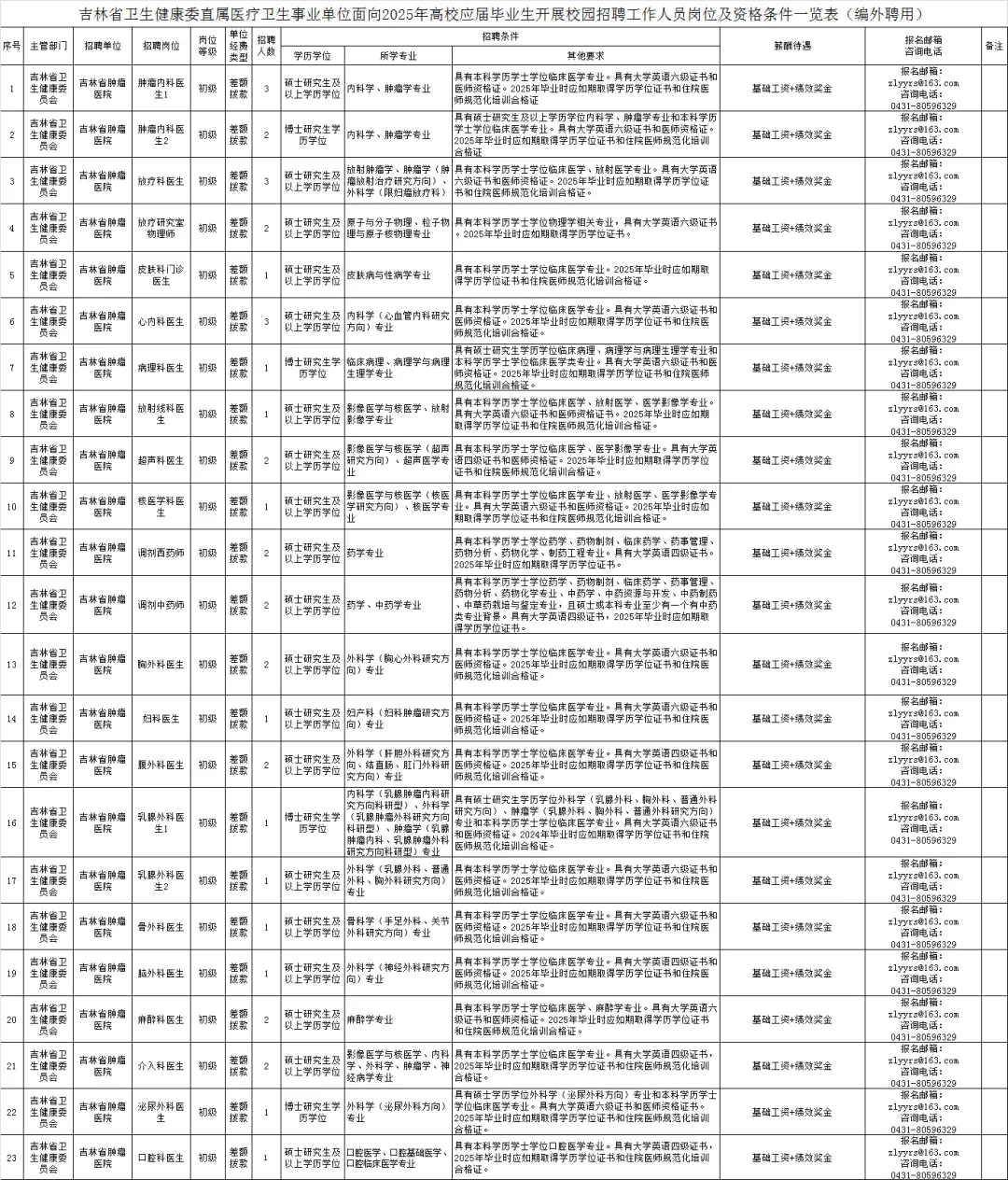 附件1 吉林省卫生健康委直属医疗机构面向2025年高校应届毕业生开展校园招聘工作人员岗位及资格条件一览表