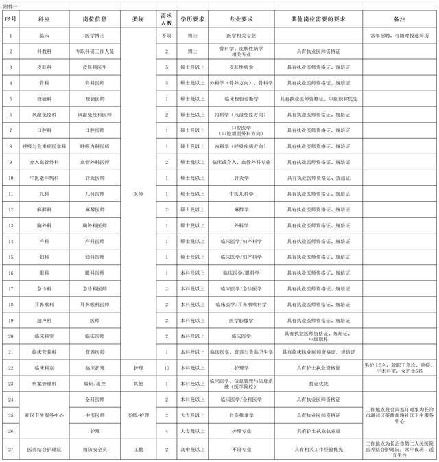附件1:长治市第二人民医院2025年公开招聘岗位需求表.xls