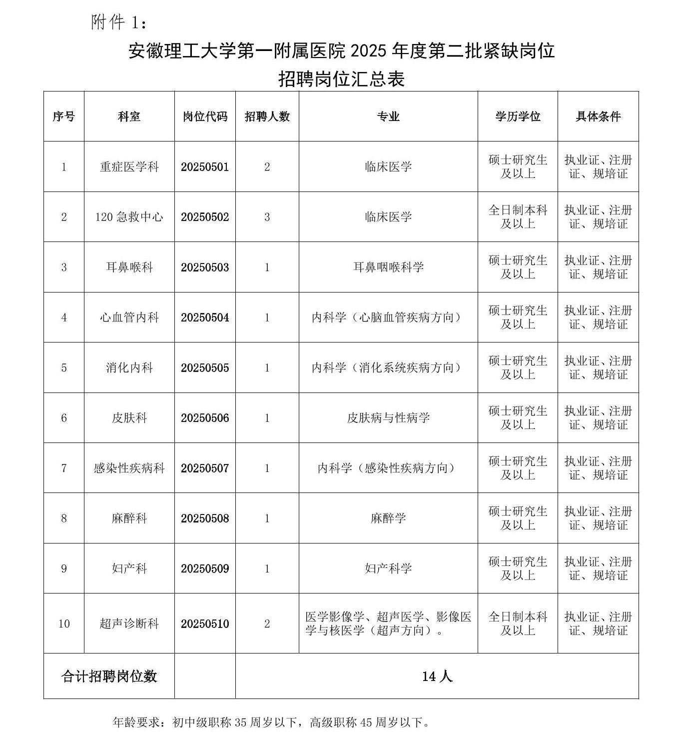 2025年安徽理工大学第一附属医院第二批紧缺岗位招聘14人公告